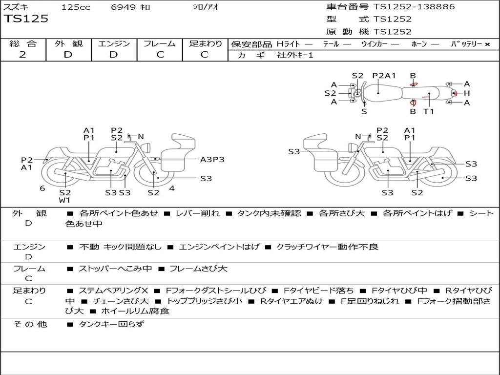 | Номер рамы / VIN | TS1252-138886 |