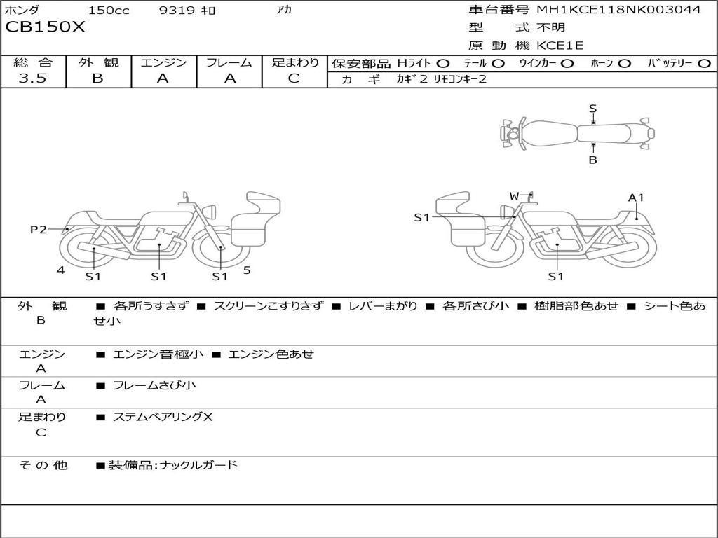 | Номер рамы / VIN | MH1KCE118NK003044 |