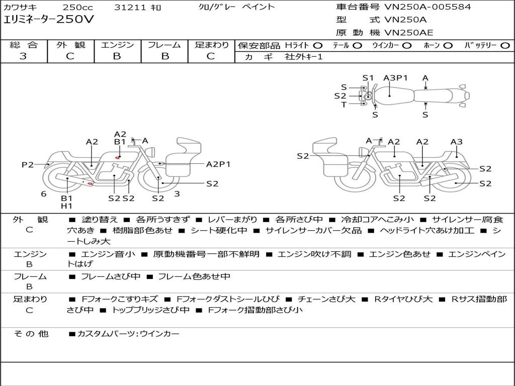 | Номер рамы / VIN | VN250A-005584 |