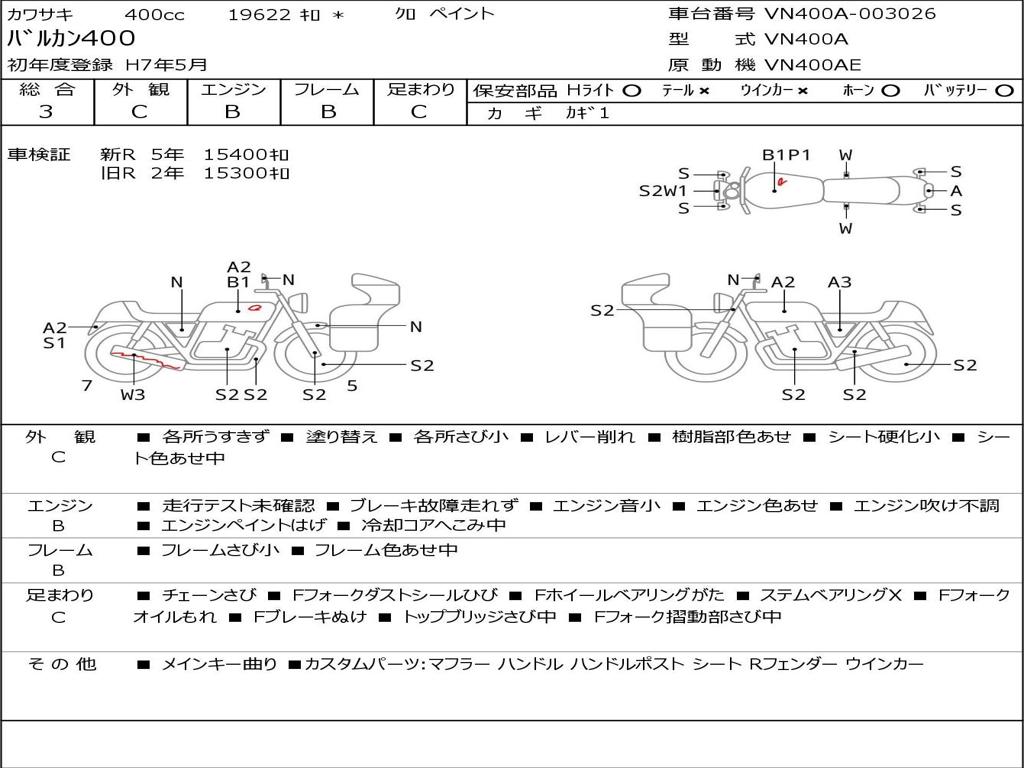 | Номер рамы / VIN | VN400A-003026 |