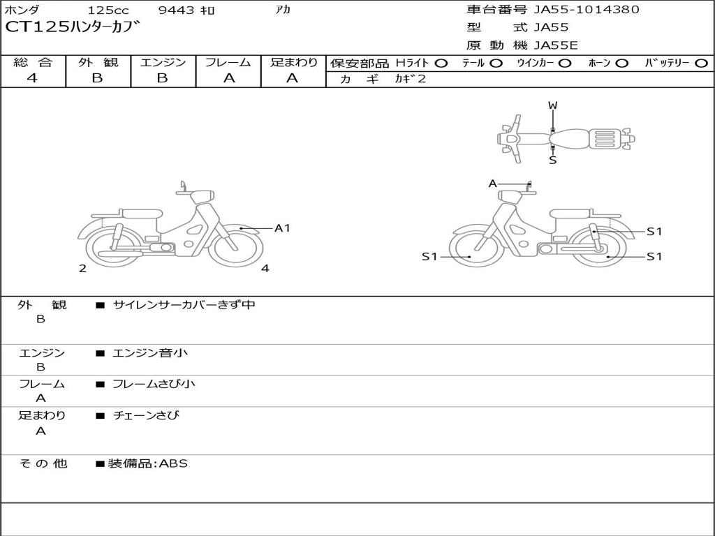 | Номер рамы / VIN | JA55-1014380 |