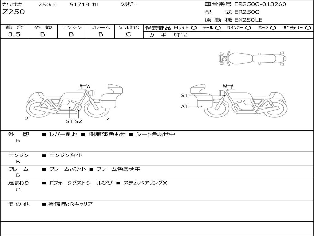 | Номер рамы / VIN | ER250C-013260 |