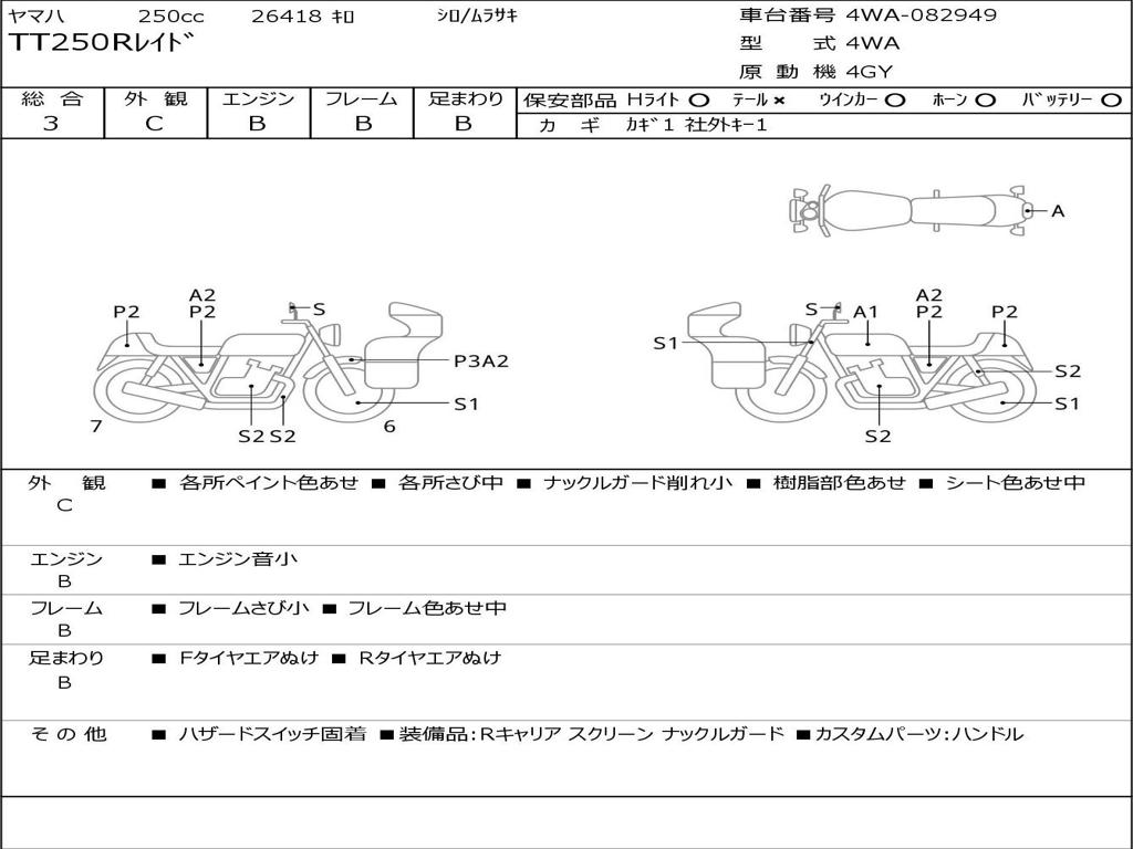 | Номер рамы / VIN | 4WA-082949 |