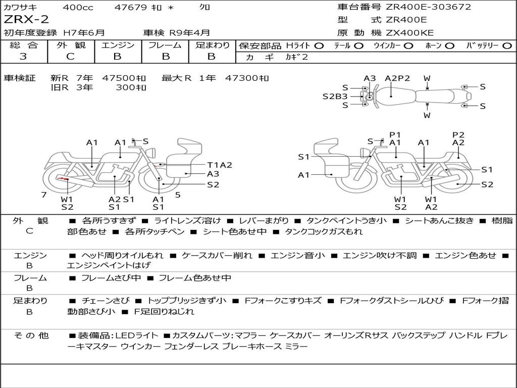 | Номер рамы / VIN | ZR400E-303672 |