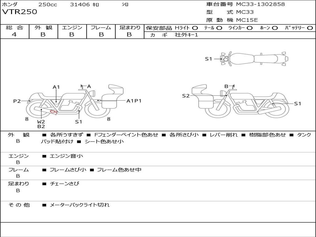| Номер рамы / VIN | MC33-1302858 |