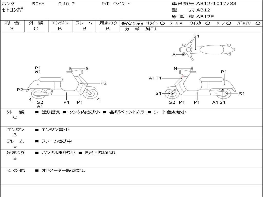 | Номер рамы / VIN | AB12-1017738 |