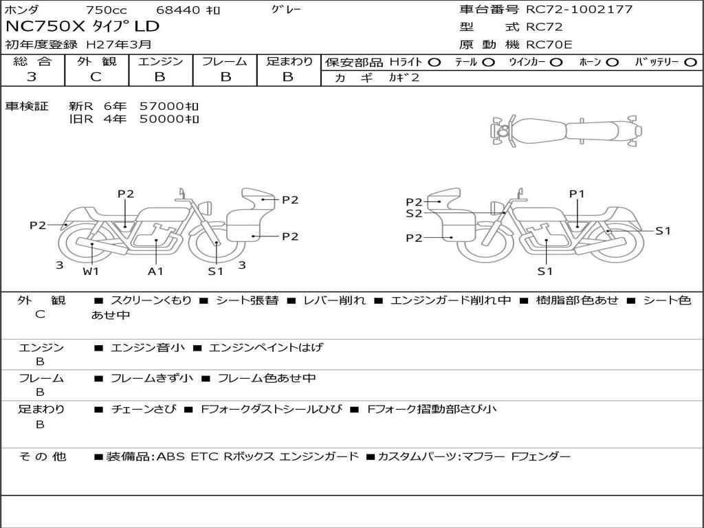 | Номер рамы / VIN | RC72-1002177 |