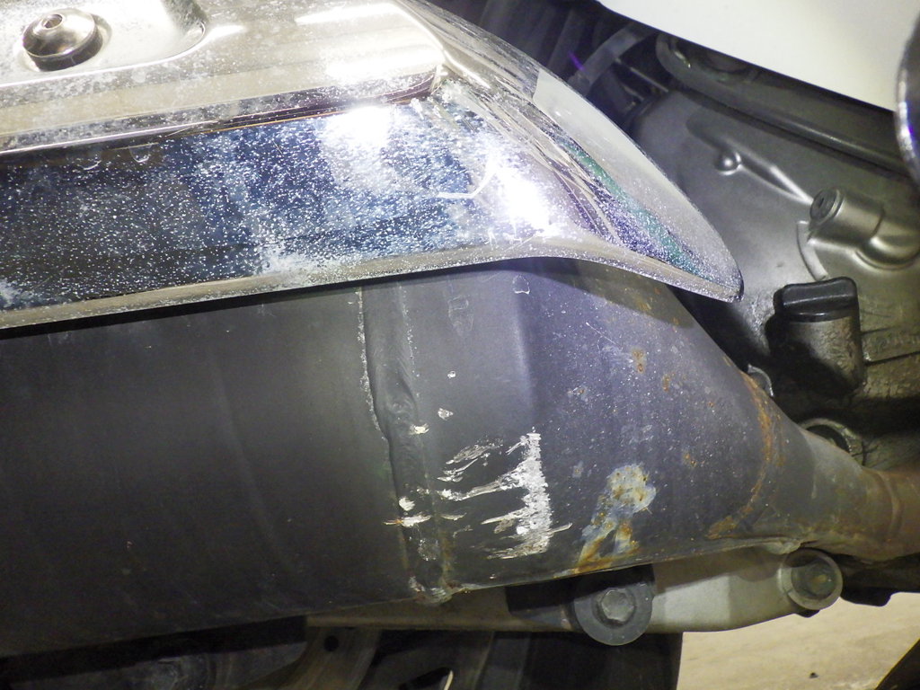 | снизу | царапины <много>, частичная подкраска, трещины <много> |