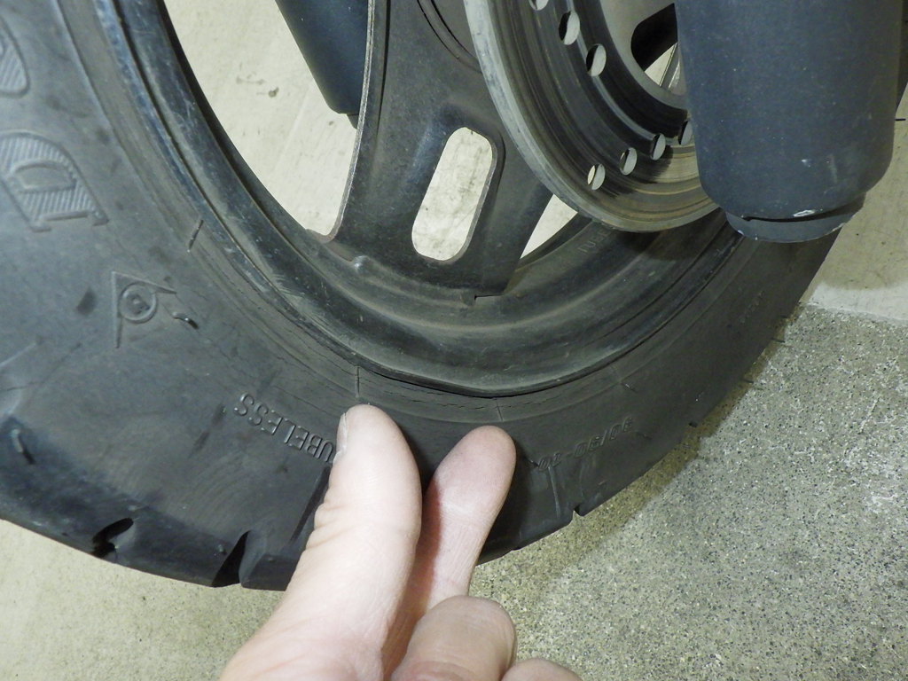 | шина | трещины, требует замены |
