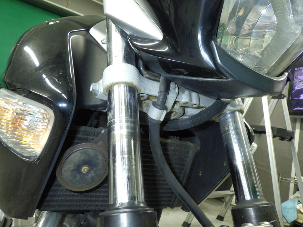 | внешняя часть вилки | следы коррозии, потертость, потек масла <много> |