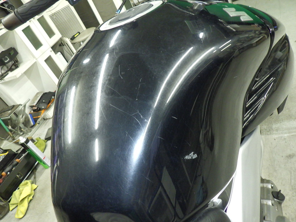 | бензобак | царапины <много>, частичная подкраска, вмятина <немного> |
