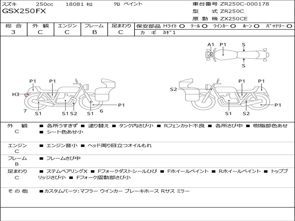 | Номер рамы / VIN | ZR250C-000178 |