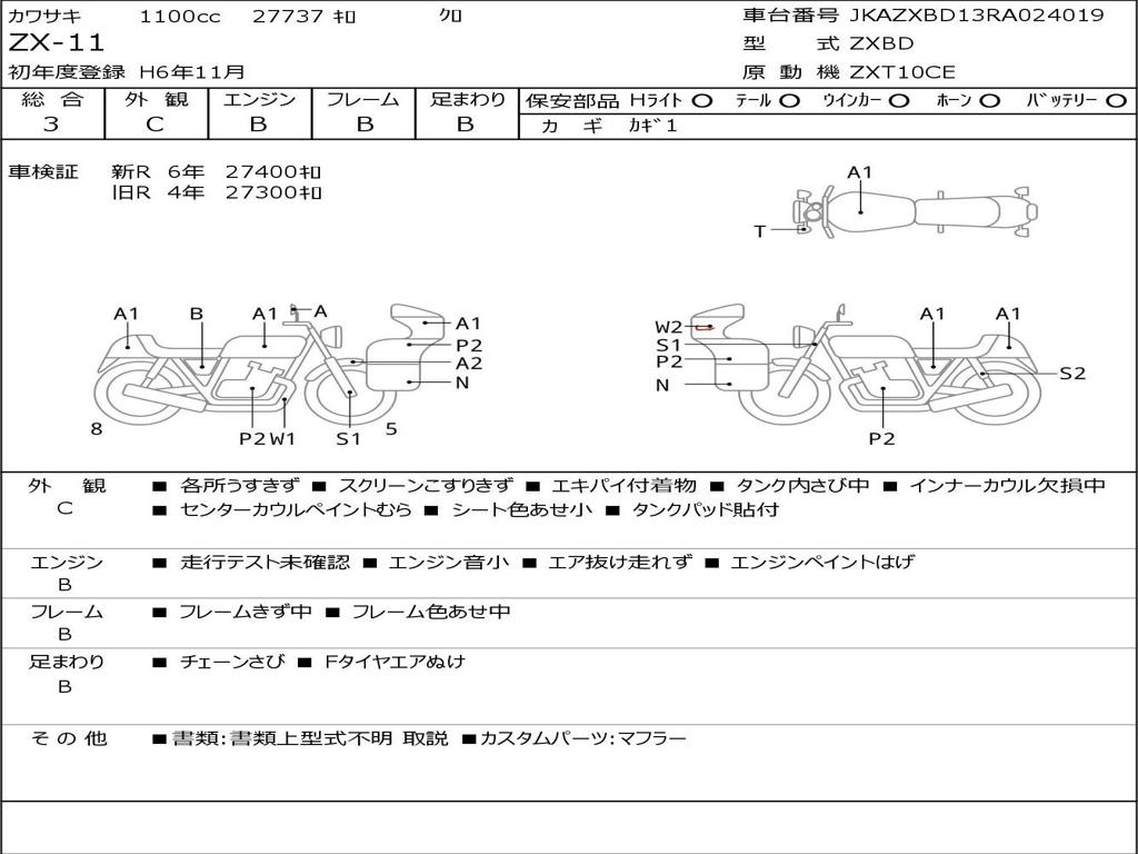 | Номер рамы / VIN | JKAZXBD13RA024019 |