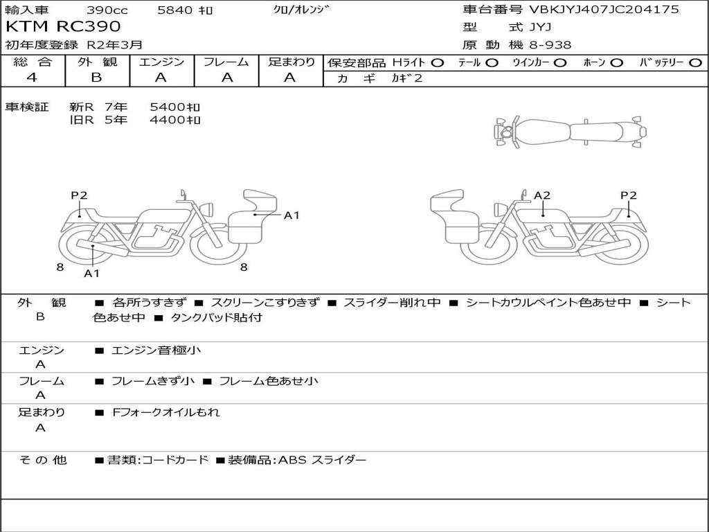 | Номер рамы / VIN | VBKJYJ407JC204175 |