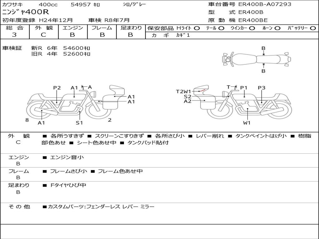 | Номер рамы / VIN | ER400B-A07293 |