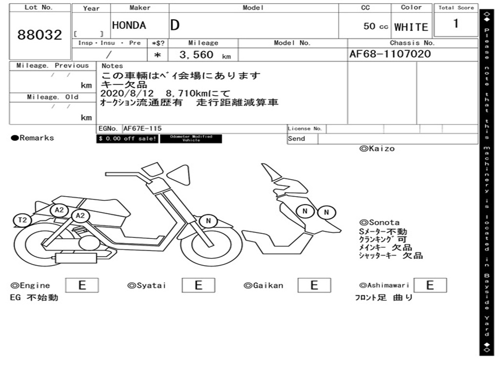 | Номер рамы / VIN | AF68-1107020 |