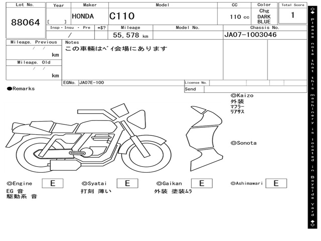 | Номер рамы / VIN | JA07-1003046 |