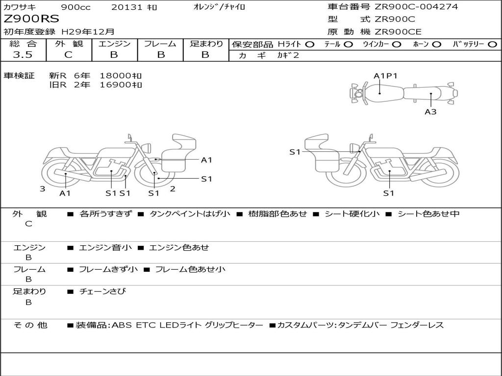 | Номер рамы / VIN | ZR900C-004274 |