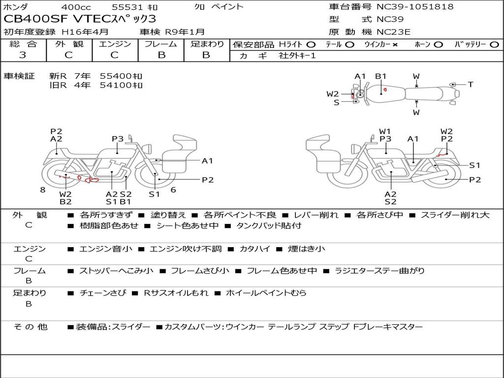 | Номер рамы / VIN | NC39-1051818 |