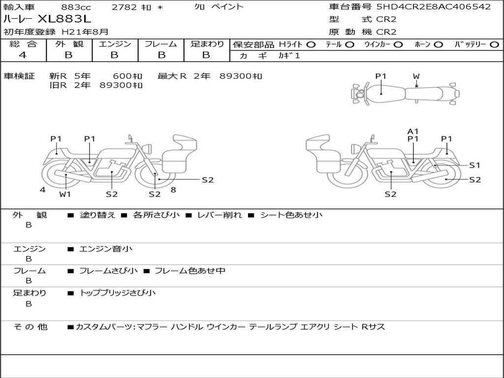 | Номер рамы / VIN | 5HD4CR2E8AC406542 |