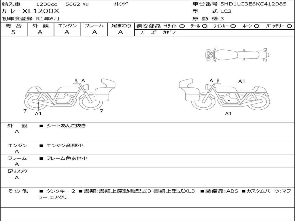 | Номер рамы / VIN | 5HD1LC3E6KC412985 |