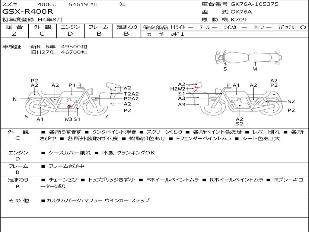 | Номер рамы / VIN | GK76A-105375 |