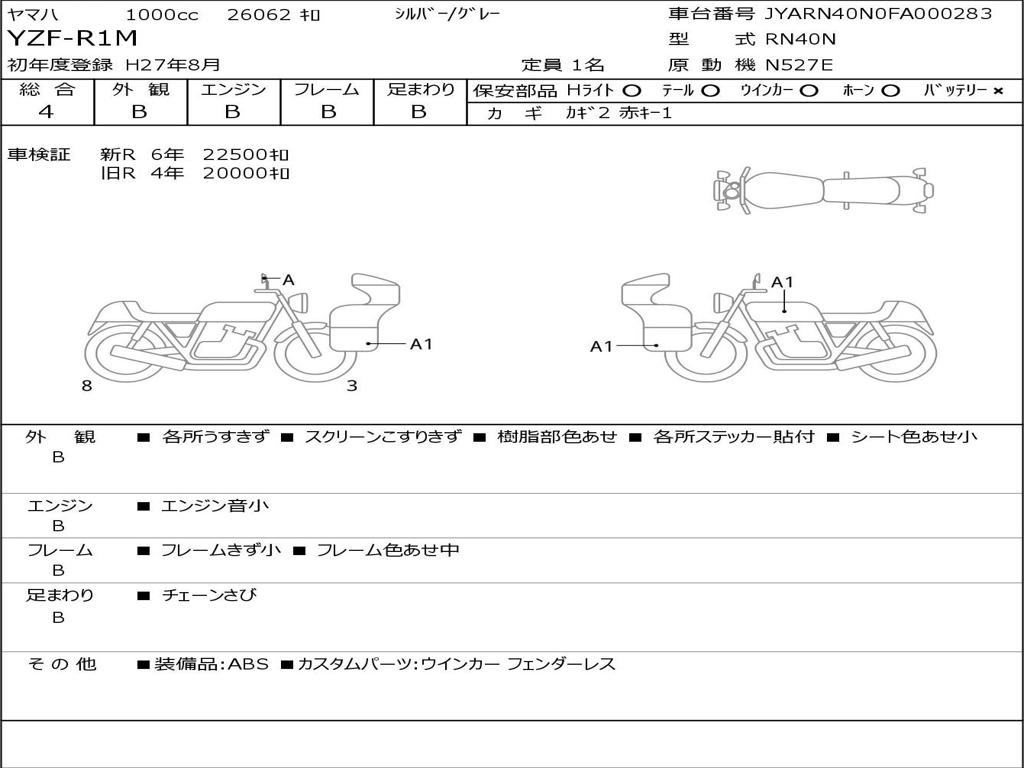 | Номер рамы / VIN | JYARN40N0FA000283 |