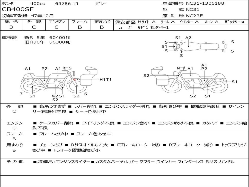 | Номер рамы / VIN | NC31-1306188 |