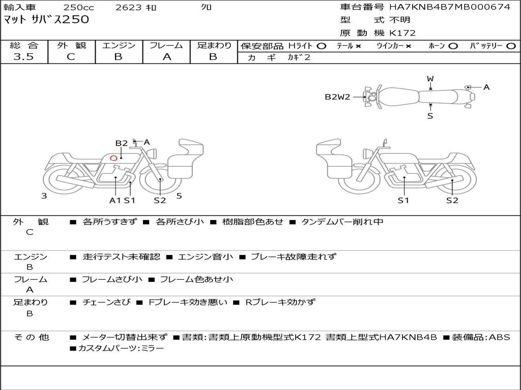 | Номер рамы / VIN | HA7KNB4B7MB000674 |