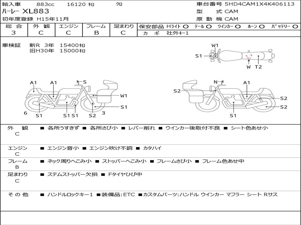 | Номер рамы / VIN | 5HD4CAM1X4K406113 |