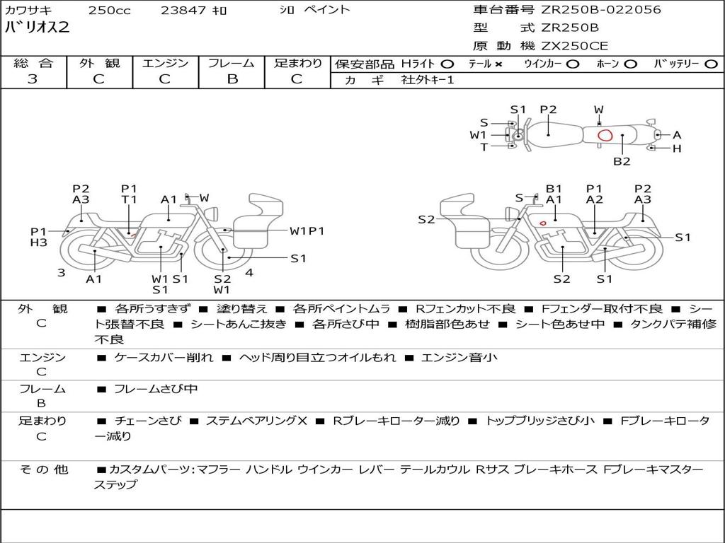 | Номер рамы / VIN | ZR250B-022056 |