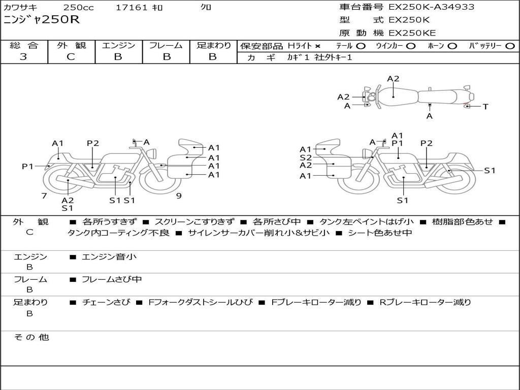 | Номер рамы / VIN | EX250K-A34933 |
