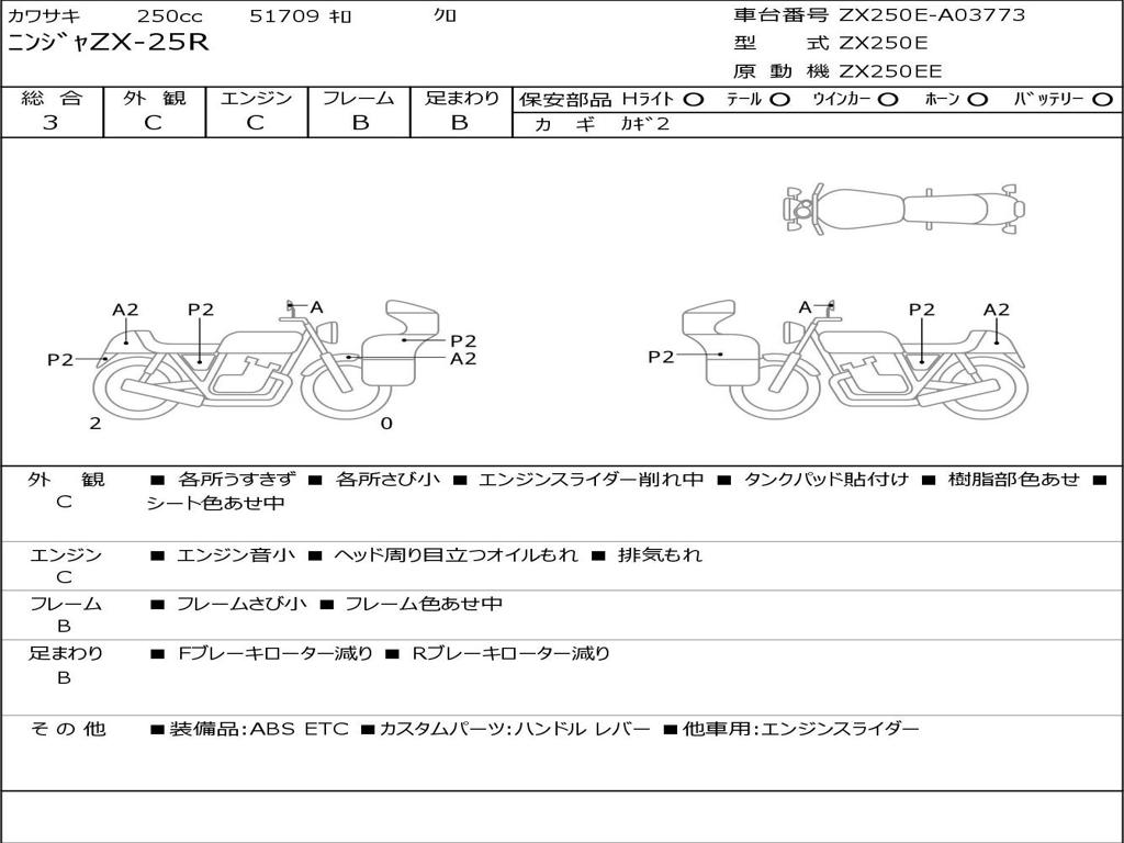 | Номер рамы / VIN | ZX250E-A03773 |
