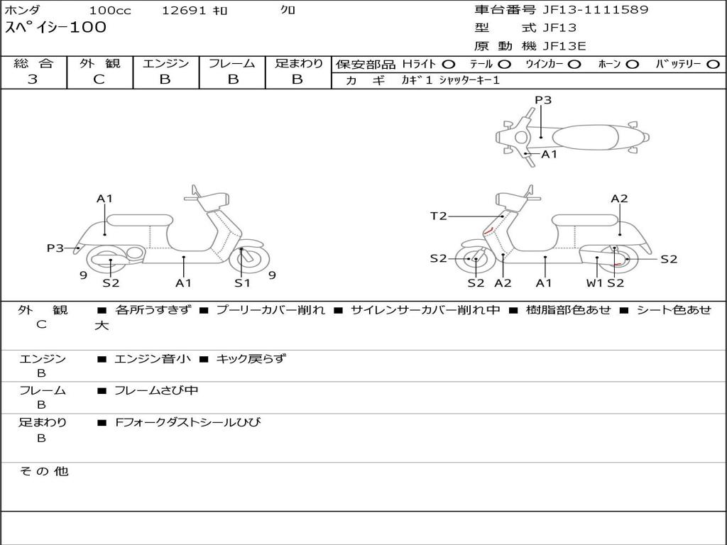 | Номер рамы / VIN | JF13-1111589 |