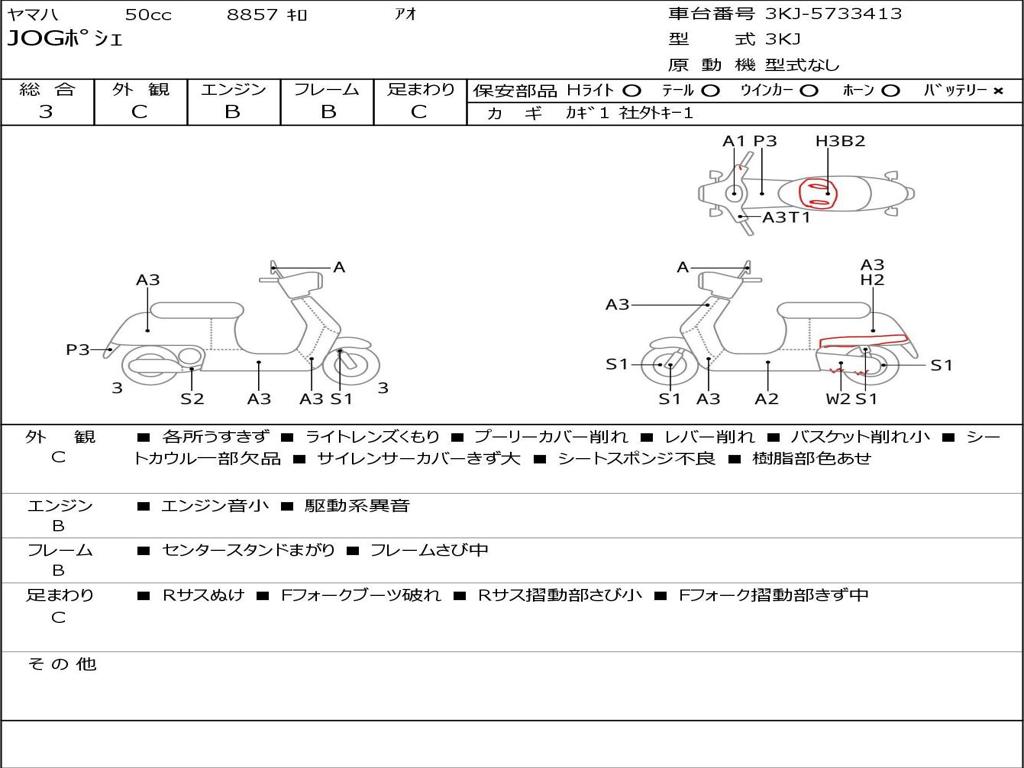 | Номер рамы / VIN | 3KJ-5733413 |