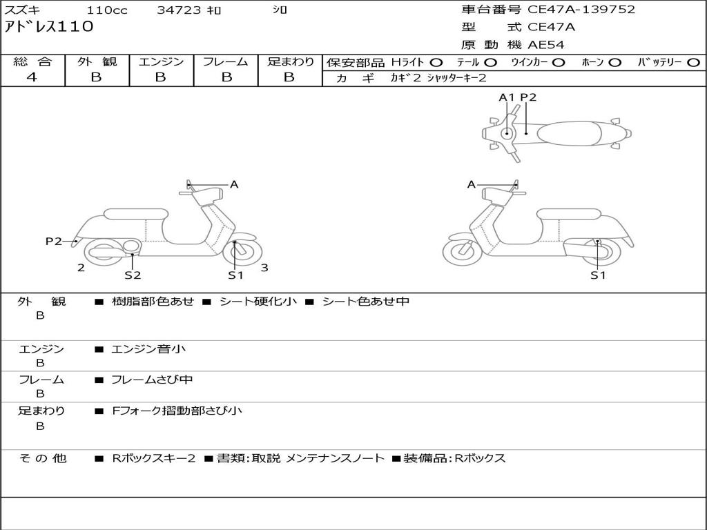 | Номер рамы / VIN | CE47A-139752 |