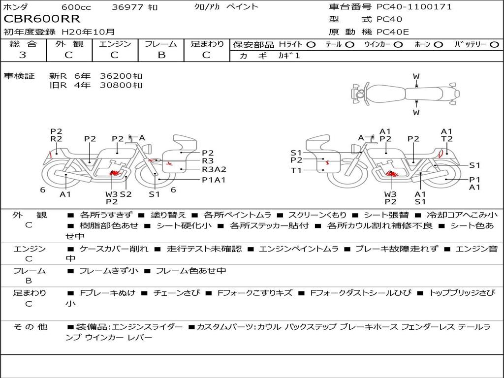 | Номер рамы / VIN | PC40-1100171 |