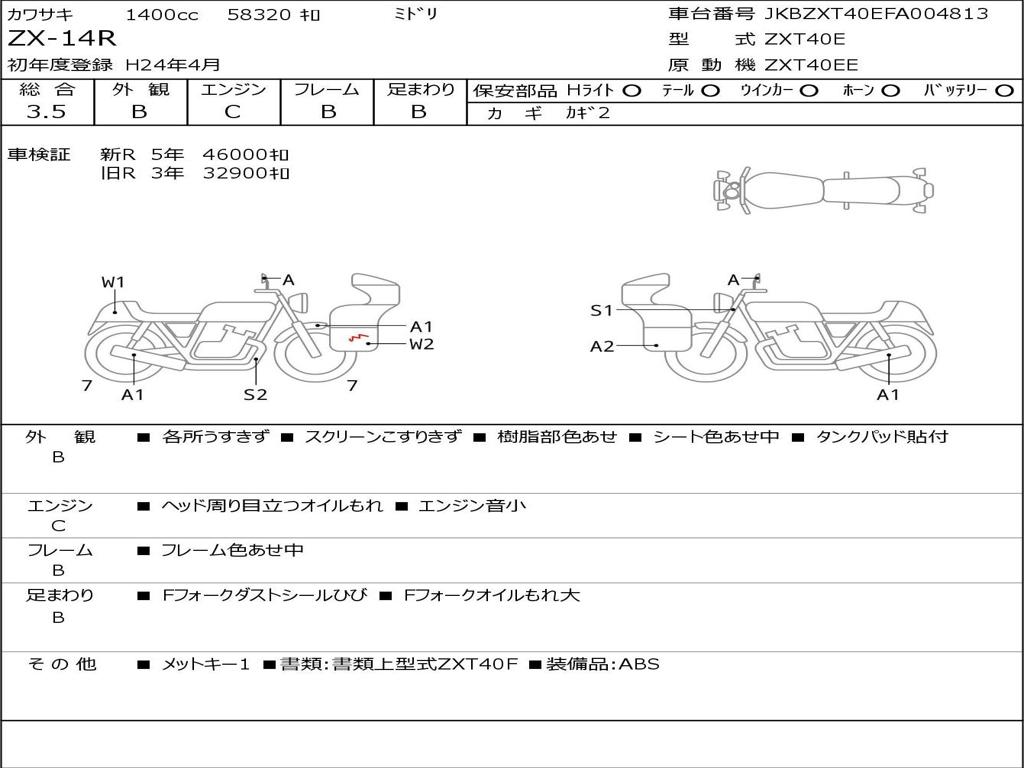 | Номер рамы / VIN | JKBZXT40EFA004813 |