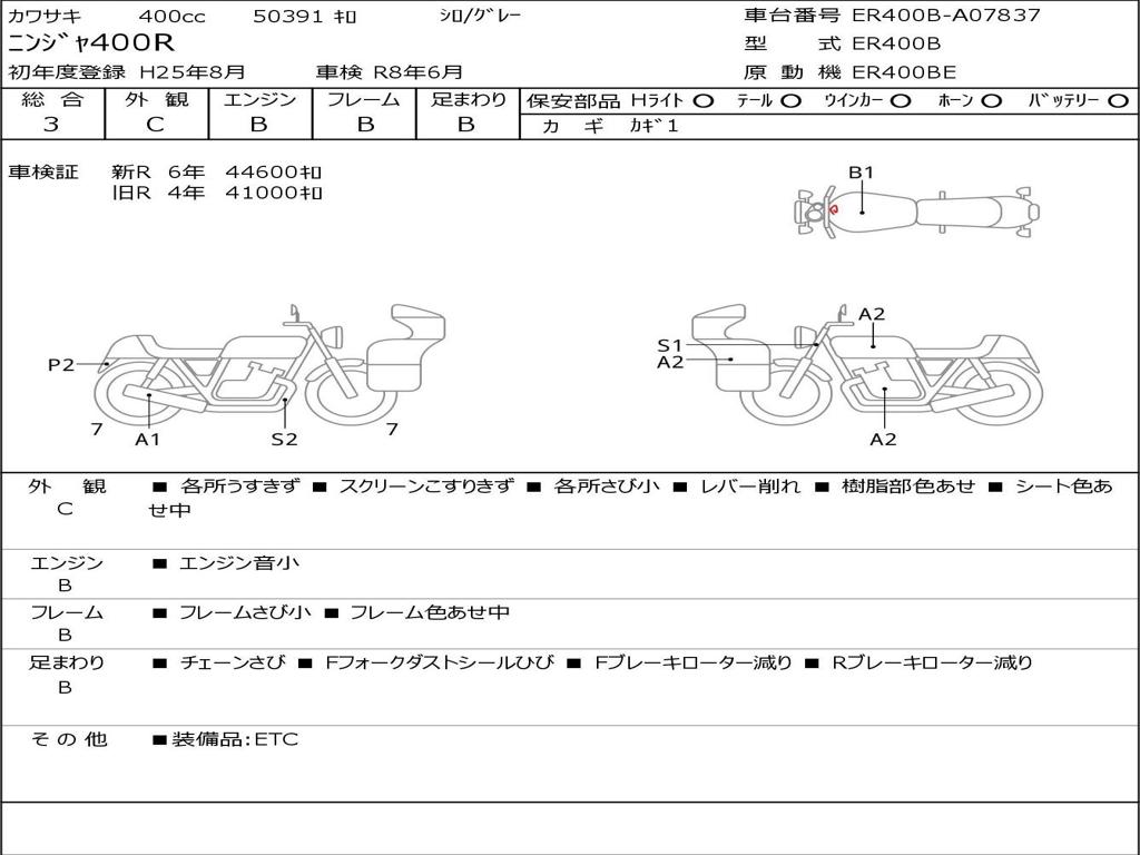 | Номер рамы / VIN | ER400B-A07837 |