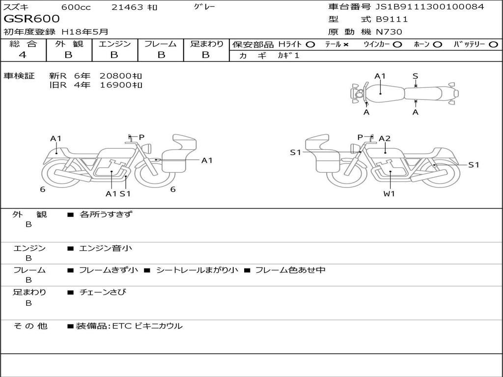 | Номер рамы / VIN | JS1B9111300100084 |