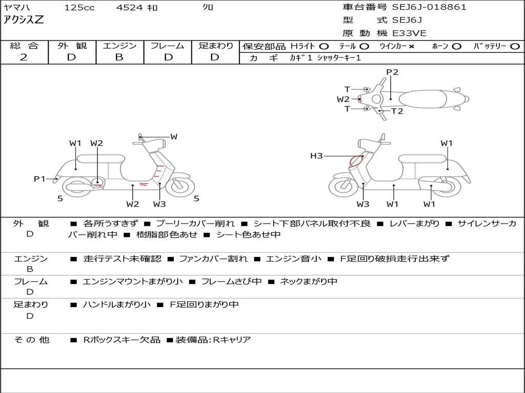 | Номер рамы / VIN | SEJ6J-018861 |