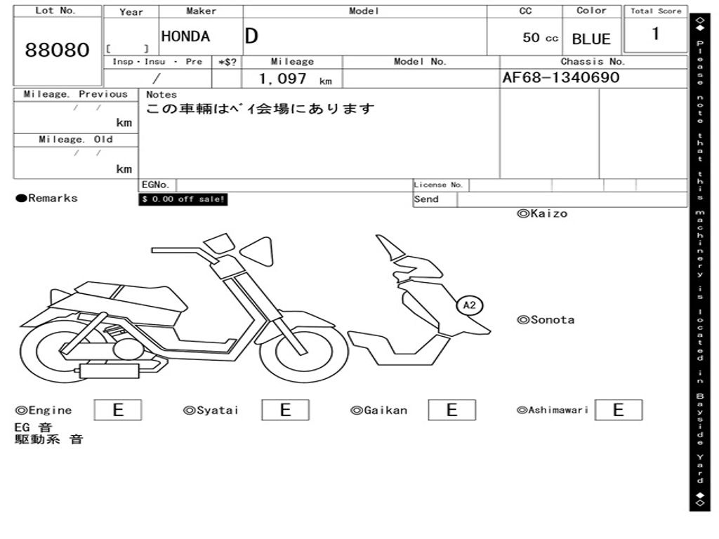 | Номер рамы / VIN | AF68-1340690 |