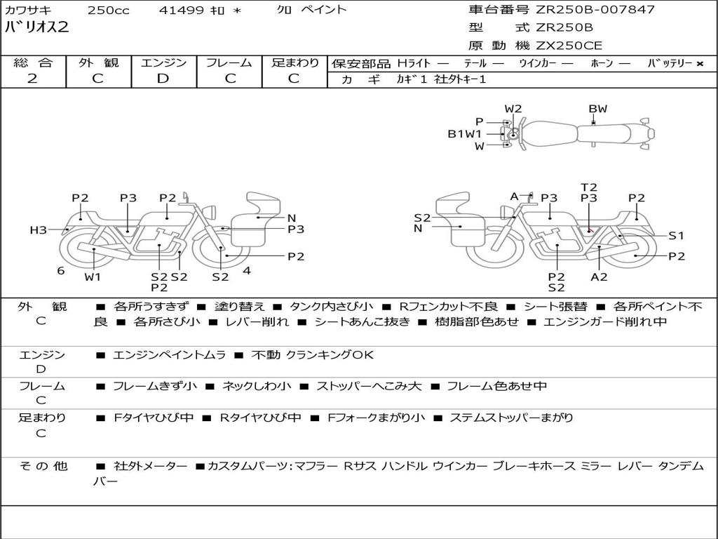| Номер рамы / VIN | ZR250B-007847 |