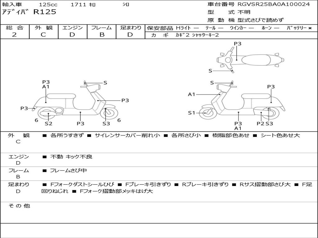 | Номер рамы / VIN | RGVSR25BA0A100024 |