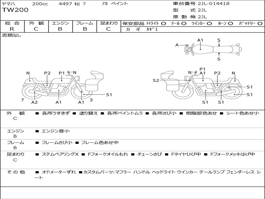 | Номер рамы / VIN | 2JL-014418 |