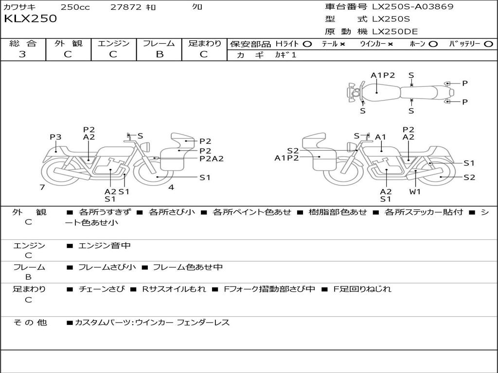 | Номер рамы / VIN | LX250S-A03869 |