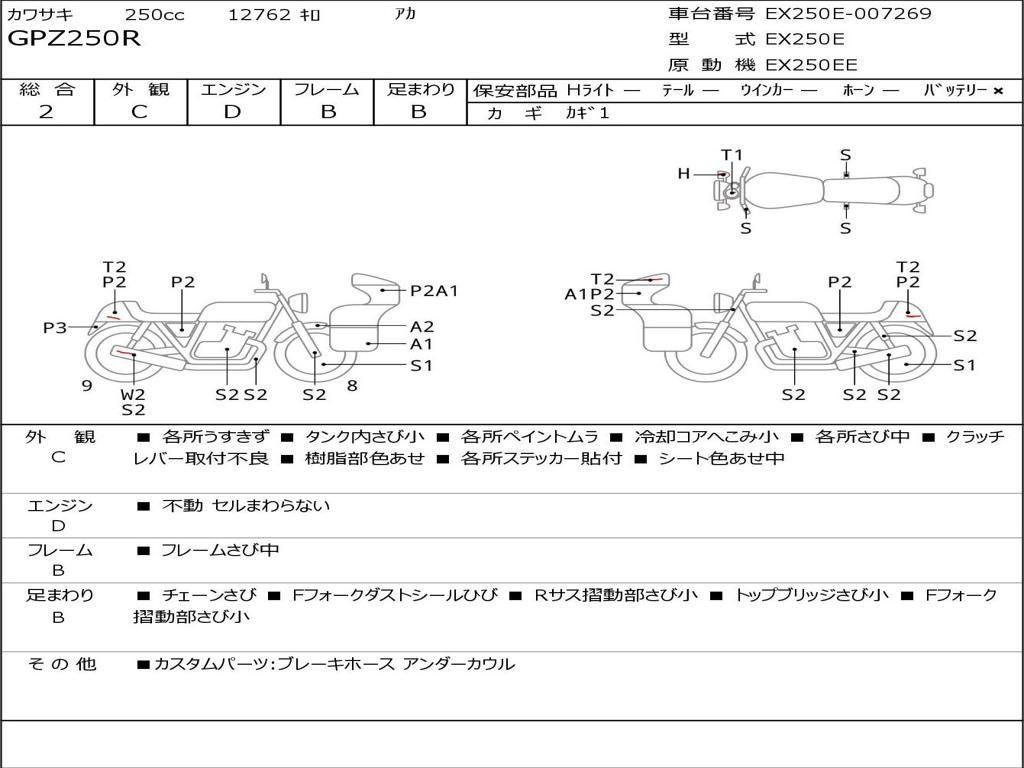| Номер рамы / VIN | EX250E-007269 |
