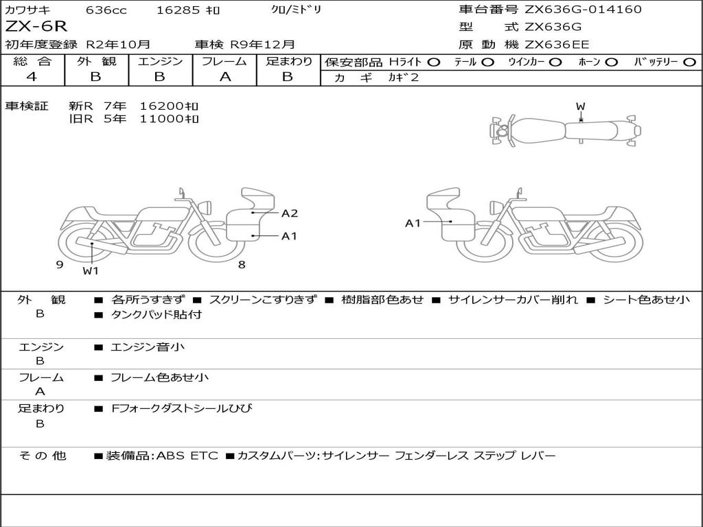 | Номер рамы / VIN | ZX636G-014160 |
