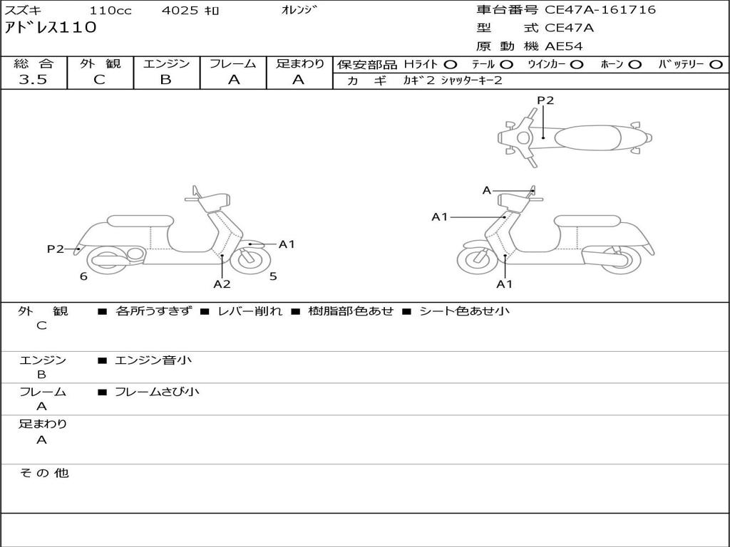 | Номер рамы / VIN | CE47A-161716 |