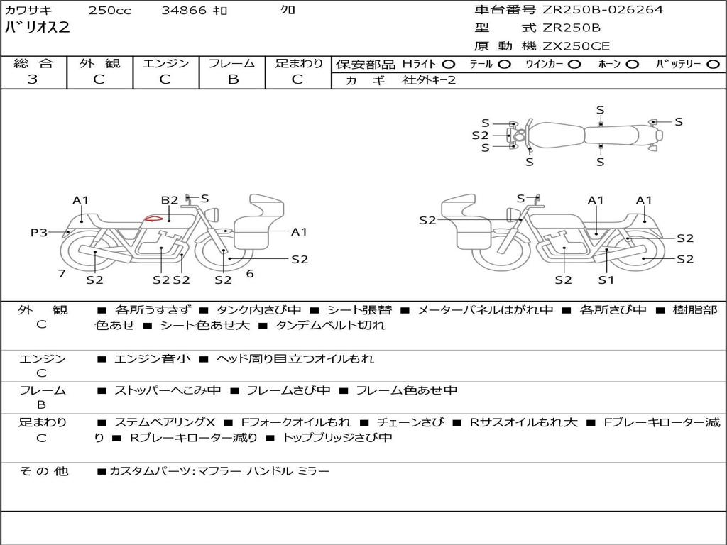 | Номер рамы / VIN | ZR250B-026264 |